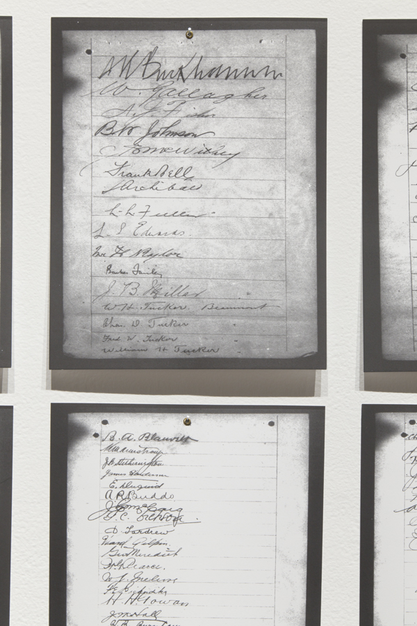 Deanna Bowen, “1911 Anti Creek-Negro Petition” from Immigration of Negroes from the United States to Western Canada 1910-1911 (detail), 2013. Photo: Toni Hafkenscheid